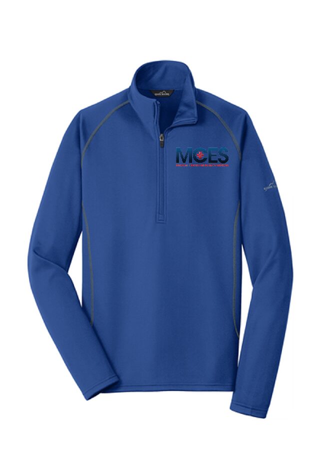 - Contrast heat transfer Eddie Bauer logo on left sleeve